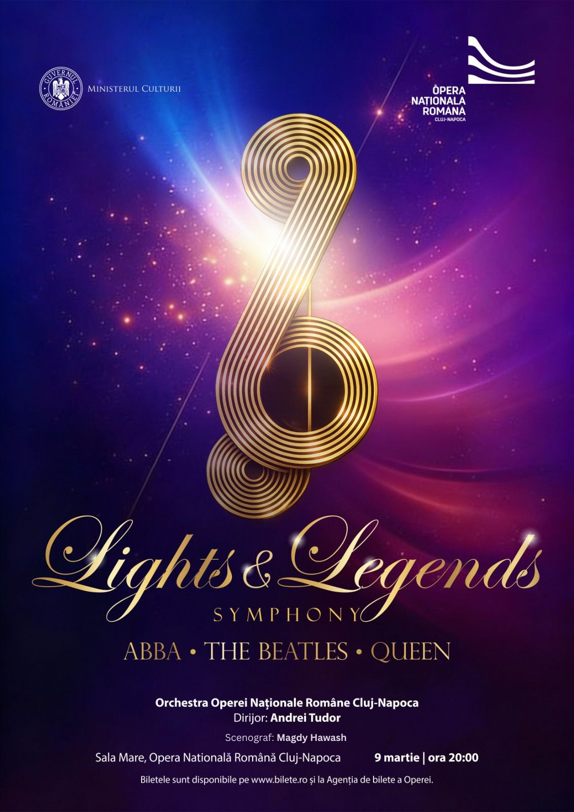 Cluj-Napoca devine scena unei seri speciale de muzică, emoție și eleganță. Lights & Legends – Symphony se va desfășura în 9 martie la Opera Națională Română Cluj-Napoca, unde publicul este invitat, de la ora 20:00, la un concert-eveniment ce aduce împreună hiturile legendare ABBA, The Beatles și Queen, într-o formulă simfonică grandioasă. Este o seară dedicată tuturor iubitorilor de muzică pop-rock și celor care vor să ofere în dar cuiva drag o experiență muzicală de neuitat.