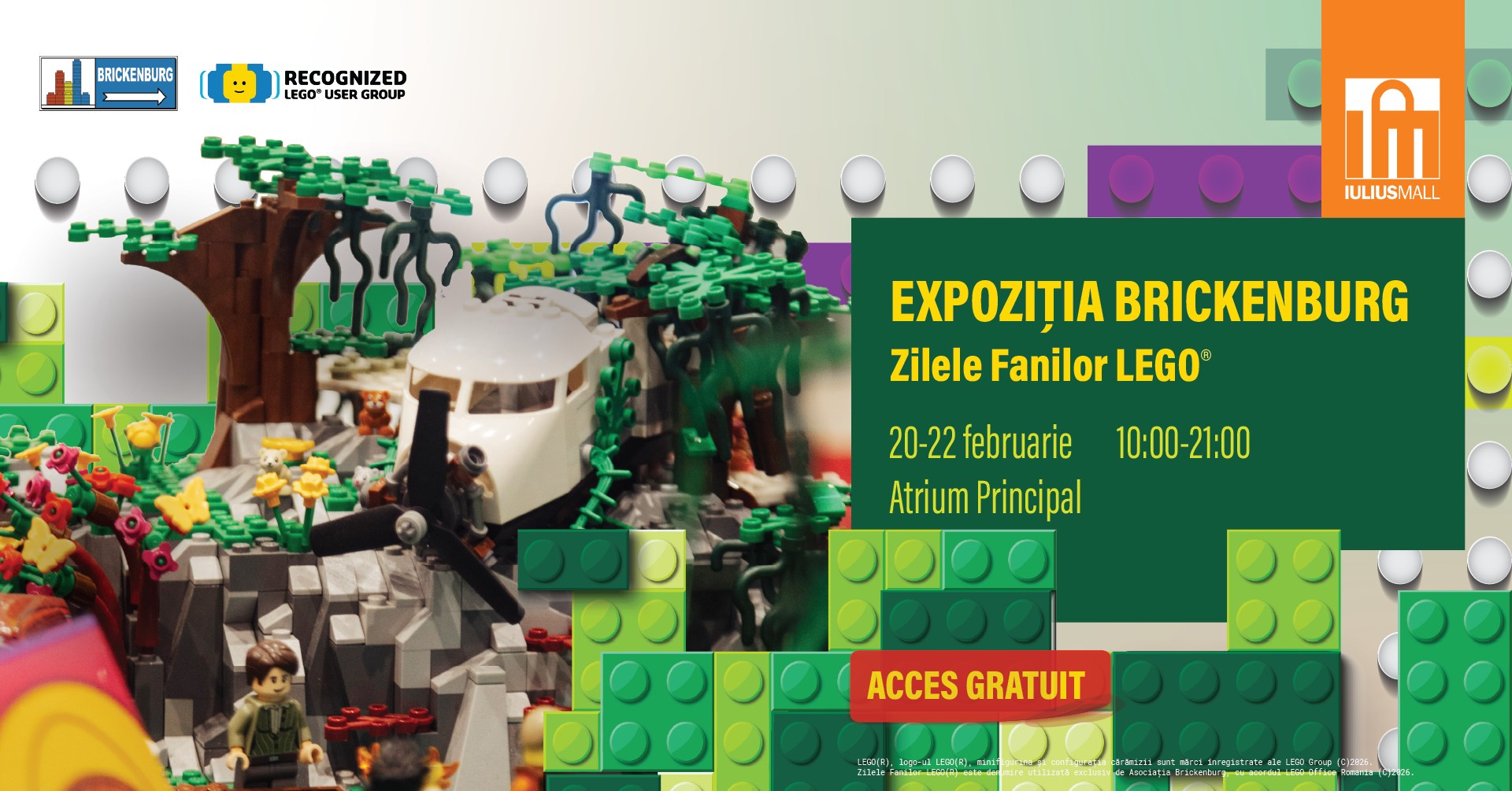 - 10:00-21:00 – Expoziția Brickenburg – Zilele Fanilor LEGO® – Iulius Mall Cluj-Napoca