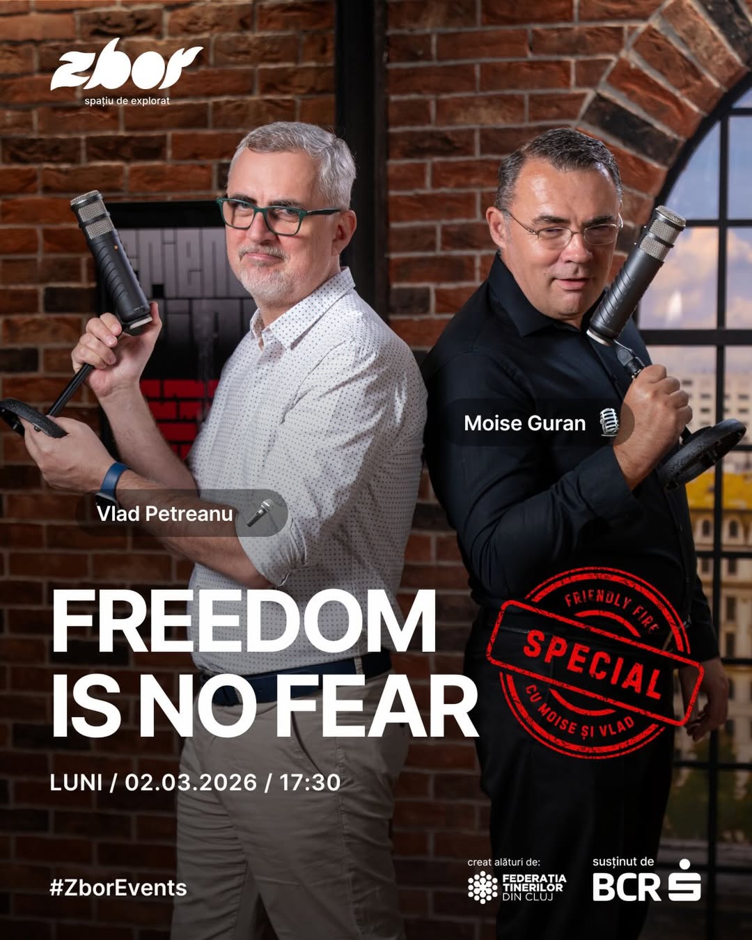 - 17:30 – Live podcast recording cu public – Friendly Fire – ZBOR Hub Cluj