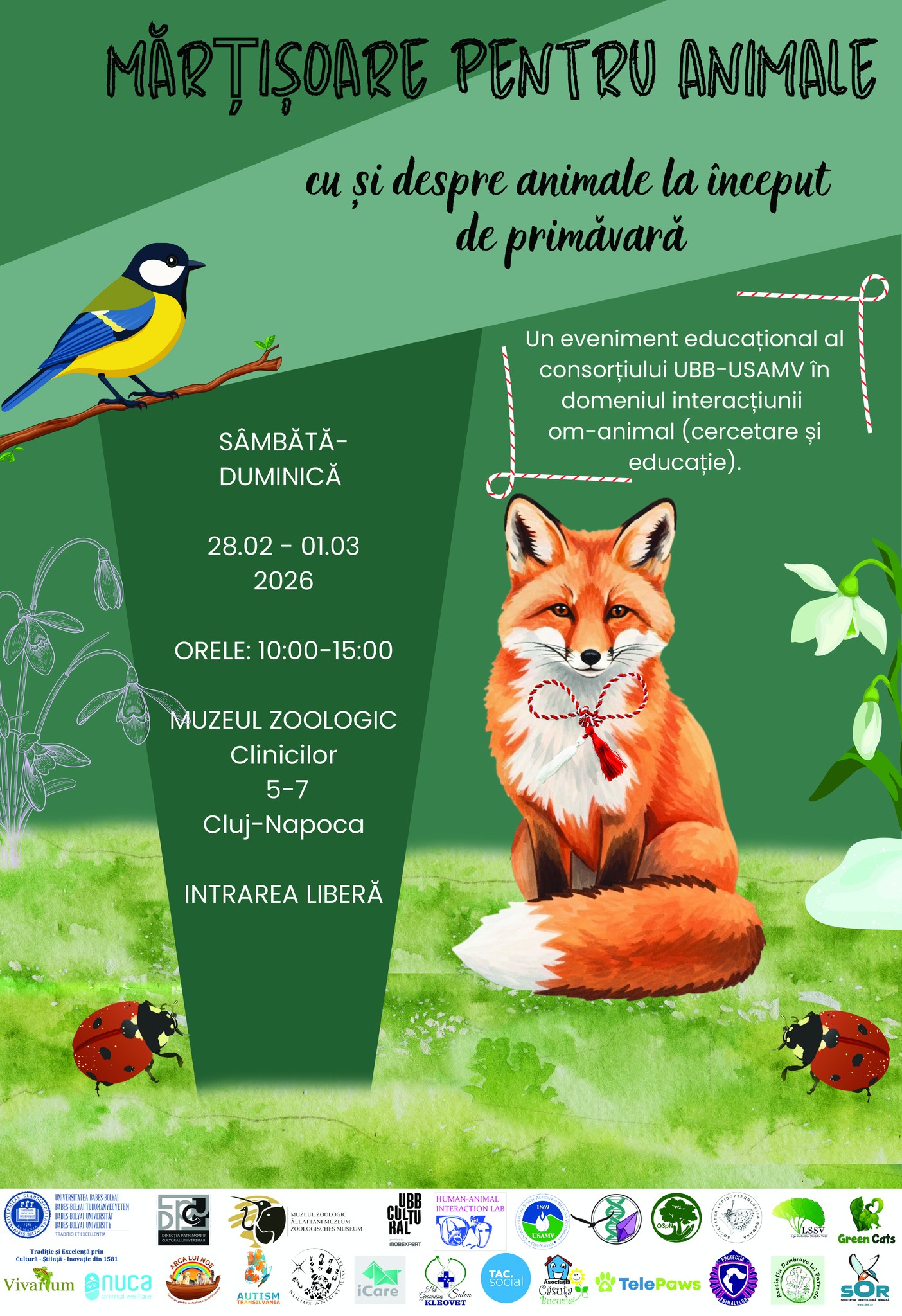- 10:00 – 14:30 – Mărțișoare pentru animale – Ediția a V-a – Muzeul Zoologic – UBB Cluj-Napoca