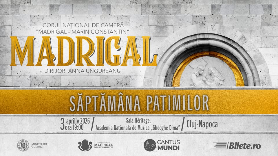 - 19:00 – Madrigal: Săptămâna Patimilor – Sala Héritage a Academiei Naționale de Muzică „Gh. Dima” Cluj-Napoca