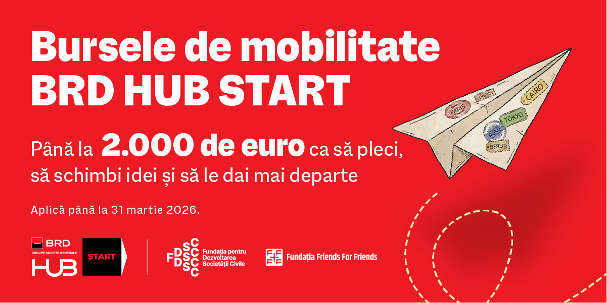 Pentru studenți, o conferință internațională, o școală de vară sau un schimb de experiență pot face diferența dintre o idee bună și o direcție de carieră sau un proiect care chiar prinde viață. Bursele BRD HUB START, lansate de Fundația Friends For Friends (FFFF) și finanțate de BRD Groupe Société Générale, vin în sprijinul acestor inițiative și oferă finanțare pentru experiențe de învățare relevante, care pot fi aduse înapoi în organizațiile și comunitățile din care fac parte.