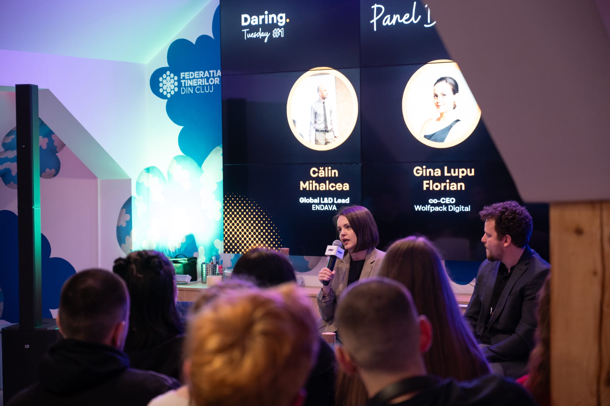 Daring Tuesday are un format care mizează pe onestitate: speakerii vorbesc despre începuturi imperfecte, despre decizii luate în incertitudine și despre ce înseamnă, în realitate, să construiești ceva de la zero. La prima ediție, această perspectivă a fost adusă de Călin Mihalcea, Global People Lead la Endava, Gina Lupu Florian, co-CEO la Wolfpack Digital, și Darius Mîndroc, co-fondator DareGen.