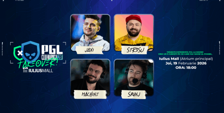Clujul devine epicentrul e-sportului mondial în această perioadă, când BT Arena găzduiește faza finală a turneului PGL Cluj-Napoca 2026. La Iulius Mall Cluj, fanii și jucătorii sunt așteptați cu mai multe surprize. Îi vei putea întâlni pe patru dintre cei mai îndrăgiți oameni din comunitatea e-sport, dar și să vezi live meciurile care se vor juca la BT Arena.