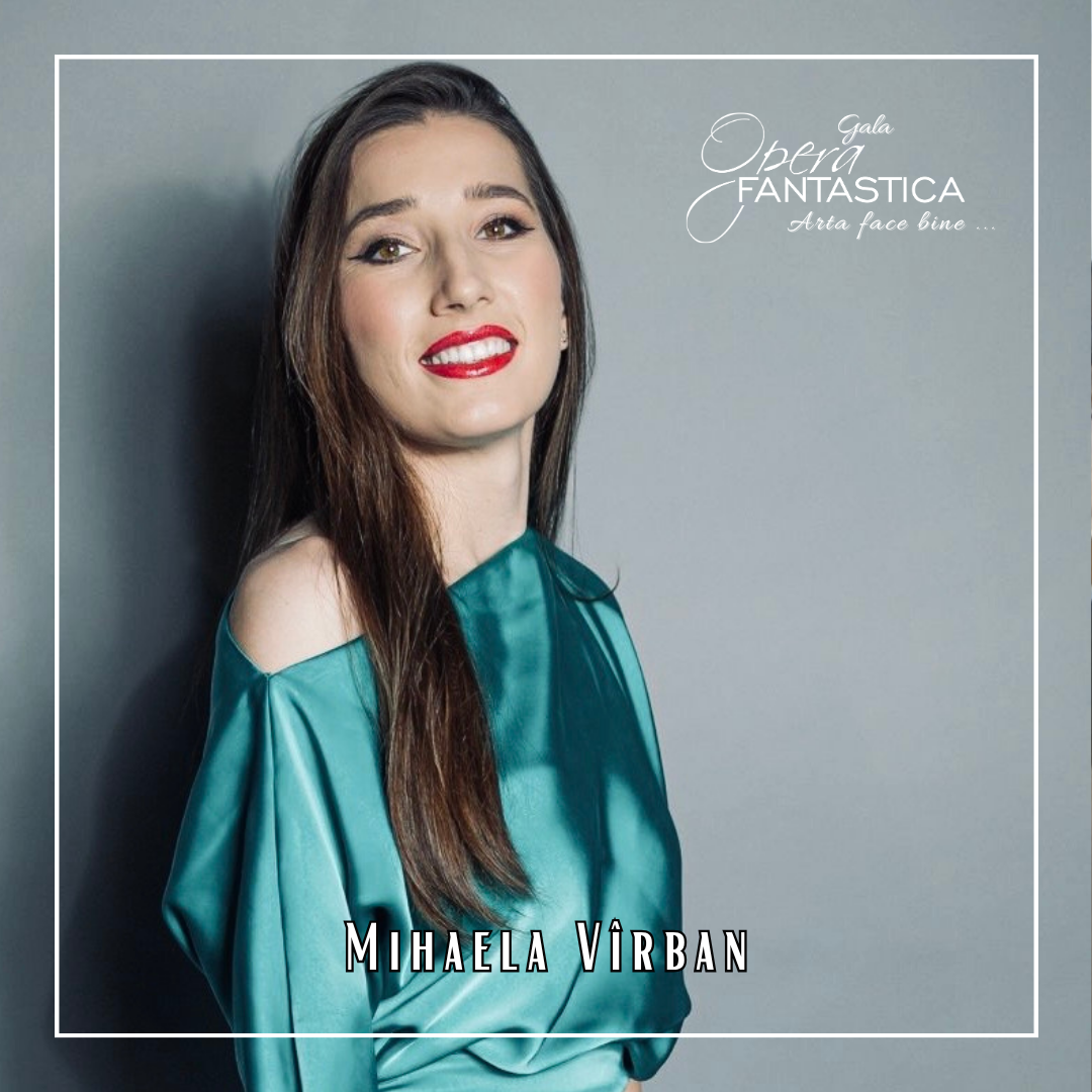 Soprana MIHAELA VÎRBAN, s-a născut în orașul Vălenii de Munte și a copilărit pe pitorescul plai al Văii Teleajănului. Este absolventă a Universității Naționale de Muzică din București (2019) – clasele de canto ale sopranelor Eleonora Enăchescu și Mariana Colpoș, câștigătoare a numeroase competiții muzicale naționale, ca de pildă: Concursul “Paul Constantinescu”, Concursul de lied “Ionel Perlea”sau Concursul National de Lied și face parte, în prezent, din Ansamblul de Soliști ai Teatrului Muzical Ambasadorii. Ca Bursieră a Uniunii Interpreților Muzicieni din România, a participat în anul 2018 la o serie de workshop-uri cu reprezentanți ai faimosului Teatru ”Metropolitan” din New York. Iar din anul 2022, a întreprins – alături de colegii săi din Teatrul Ambasadorii – o serie de turnee internaționale în: Austria, Belgia, Cuba, Slovacia sau China. Este absolventă a cursurilor de măiestrie ale primei ediții Salbek Opera Festival 2023, program în care i-a avut mentori pe mezzosoprana Ruxandra Donose, soprana Leontina Văduva și tenorul Ramon Vargas. Repertoriul său curent cuprinde roluri precum: Adina din opera “Elixirul Dragostei” de G. Donizzeti, Zerlina din opera “Don Giovanni” de W.A Mozart, Franziska din opereta “Sange Vienez” de J.Strauss, Nella din opera Gianni Schicchi de G. Puccini.
