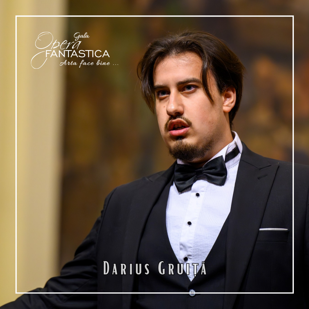 Baritonul DARIUS GRUIȚĂ, s-a născut în Reșița și și-a început parcursul muzical la Liceul de Muzică „Sabin Păutza” din orașul natal. A continuat studiile la Facultatea de Muzică și Teatru din Timișoara – sub îndrumarea profesoarei Mariana Șarba, unde și-a dezvoltat abilitățile interpretative în repertoriul de operă și operetă, absolvind-o, cu rolurile: Boni din opereta ”Silvia” de Emmerich Kálmán și Buffy din operreta ”Floare din Hawaii” de P. Abraham. Debutul său ca artist liric, a avut loc pe scena Operei Naționale Române din Timișoara, cu rolul Contele Gustav von Pottenstein din opereta ”Țara Surâsului”, urmat de rolul Vicontele Cascada din opereta ”Văduva Veselă” de Franz Lehar. Din 2024, Darius Gruiță colaborează cu ansamblul coral al Operei Naționale Române din Timișoara, continuându-și ascensiunea artistică pe scena lirică.