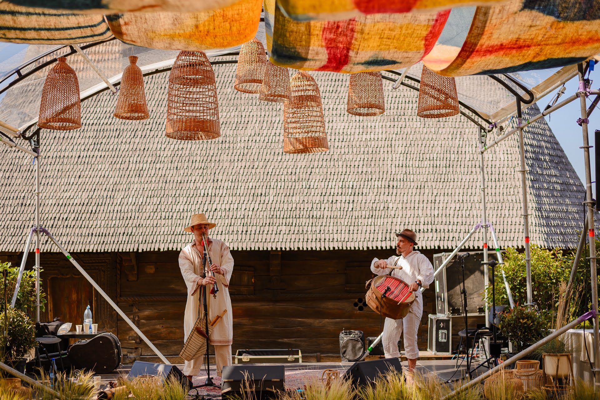 A treia, și cea mai mare, se va desfășura în vale, la Scena de Găsit — 80 x 20 de metri de textile care iau forma unui mic labirint. Un spațiu gândit pentru cei care vor să se rupă de agitația târgului, să tragă sufletul înconjurați de artă, tolăniți pe un balot de fân. Undeva acolo, ascunsă între fire, e și o scenă mică cu cântări intime — pe care trebuie s-o găsești.