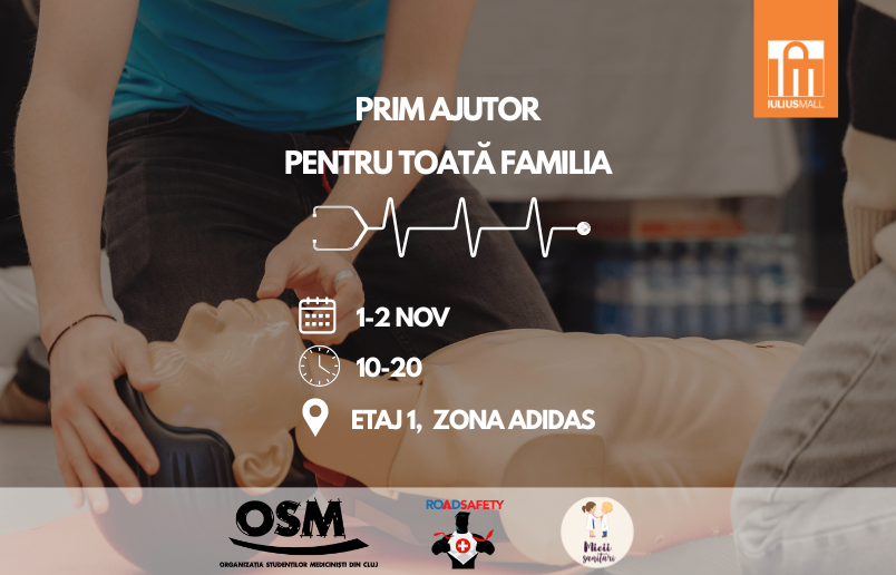 O nouă ediție a cursului de „Prim-ajutor pentru toată familia” are loc în acest weekend în Iulius Mall. Clujenii sunt așteptați să afle mai multe tehnici ce pot salva vieți și, totodată, să învețe cum se acordă primul ajutor femeilor însărcinate și copiilor. Evenimentul este organizat în parteneriat cu Micii Sanitari și Road Safety din cadrul organizației studenților mediciniști, iar participarea este gratuită.
