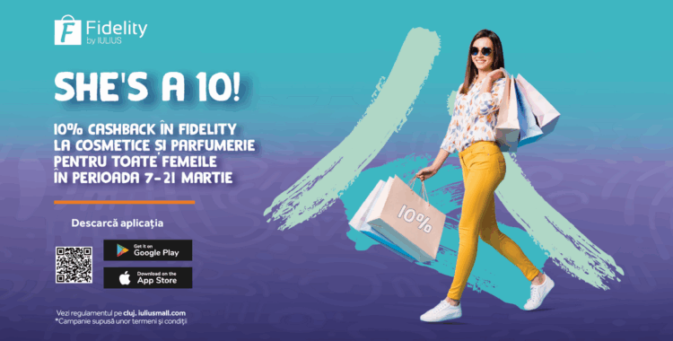 Cel mai frumos cadou de primăvară este, totodată, și cel care te inspiră să te bucuri de tot ce te înconjoară. La Iulius Mall Cluj continuăm să le celebrăm pe femeile din viața noastră printr-o campanie dedicată lor. „She’s a 10!”, iar aplicația Fidelity by Iulius le oferă 10% cashback pentru toate produsele din categoria cosmetice și parfumerie.