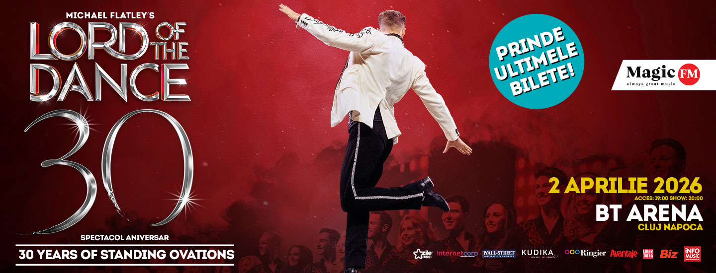 Spectacolul aniversar Lord of the Dance-30 de ani ajunge în România la începutul lunii aprilie, cu o primă oprire la Cluj-Napoca, în 2 aprilie la BT Arena, urmând ca în data de 3 aprilie să fie prezentat la București, la Sala Palatului.