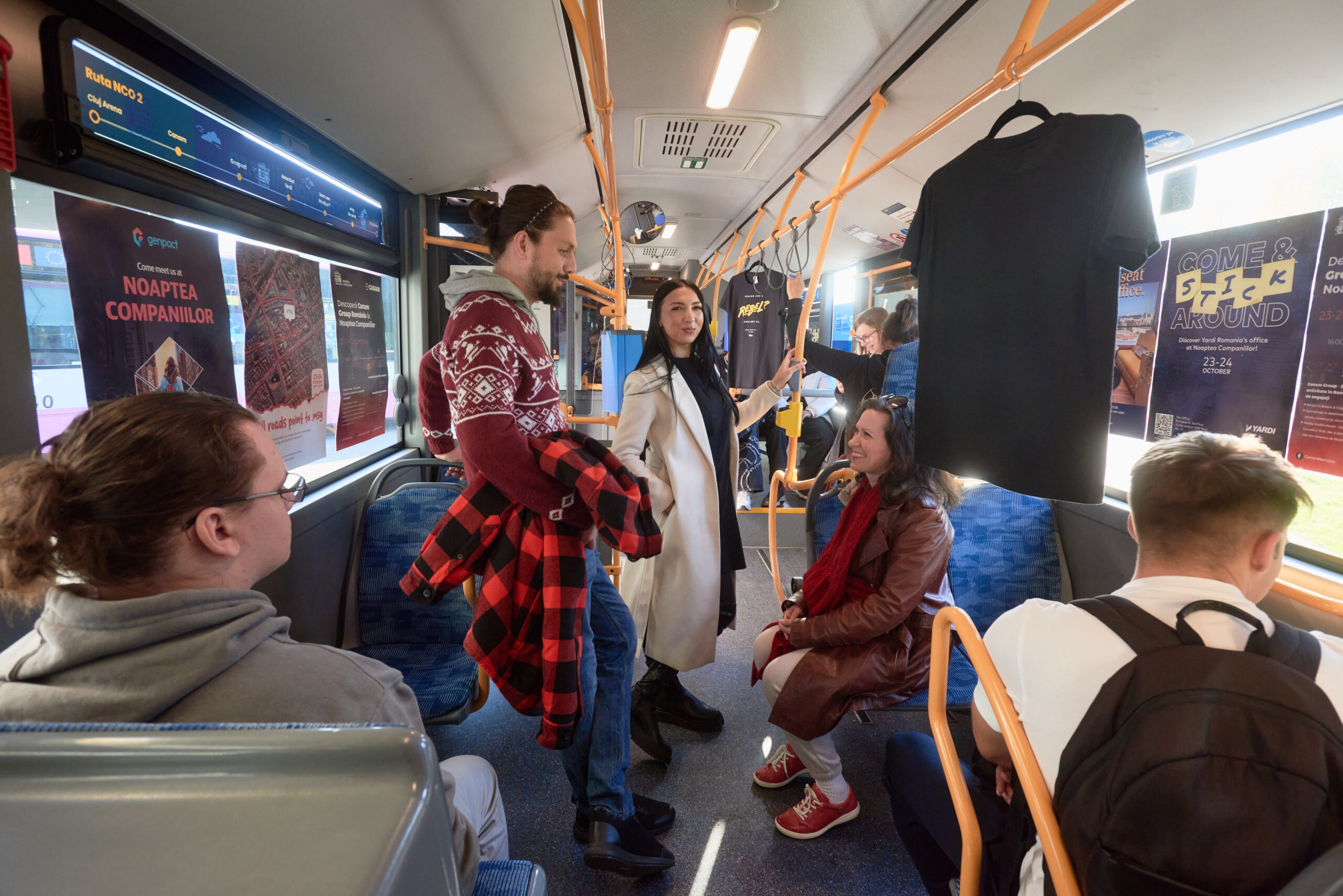 Pentru a se deplasa la firme, vizitatorilor li se pun la dispoziție autobuze speciale. Rutele și orarul autobuzelor, provenite din flota CTP Cluj-Napoca, pot fi consultate pe www.noapteacompaniilor.ro/rute-2025/. Cele două linii puse la dispoziție vor porni din oră în oră de la Cluj Arena – stația inițială. Pe de altă parte, vizitatorii care doresc să ajungă la companii cu alt mijloc de transport sau pe jos sunt invitați cu drag să facă acest lucru.