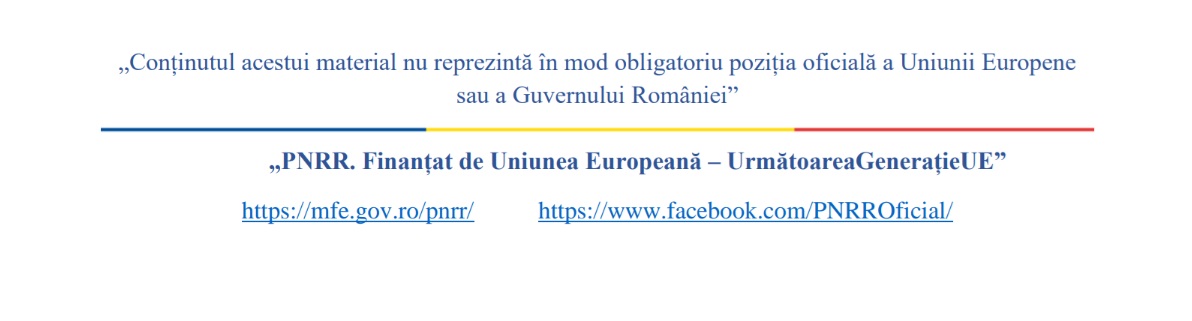 Valoare totală a contractului de finanțare este de 346.554,42 lei, din care valoarea maximă nerambursabilă finanțată din PNRR este de 296.948,96 lei, contribuția proprie a beneficiarului fiind de 49.605,46 lei.
