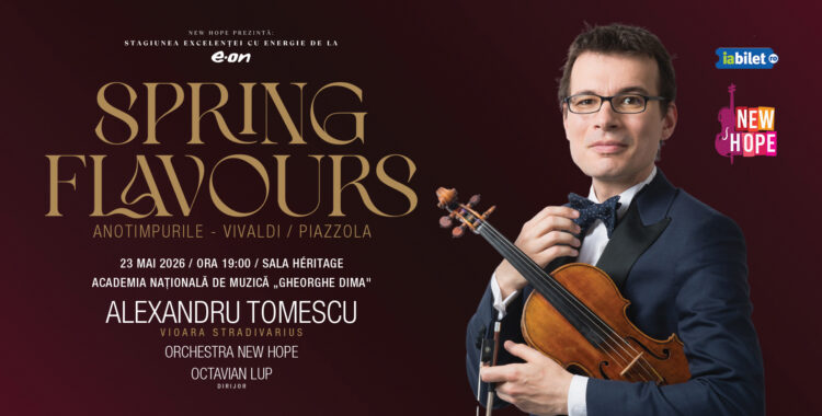 Orchestra New Hope revine în fața publicului clujean cu un nou eveniment de referință, concertul Spring Flavours, care va avea loc în 23 mai 2026, de la ora 19:00, la Sala Héritage a Academiei de Muzică „Gheorghe Dima”. Sub conducerea dirijorului Octavian Lup, concertul îl aduce ca invitat special pe violonistul Alexandru Tomescu, unul dintre cei mai apreciați muzicieni români ai momentului, cunoscut pentru prezențele sale pe scene importante precum Carnegie Hall sau Théâtre des Champs-Élysées.