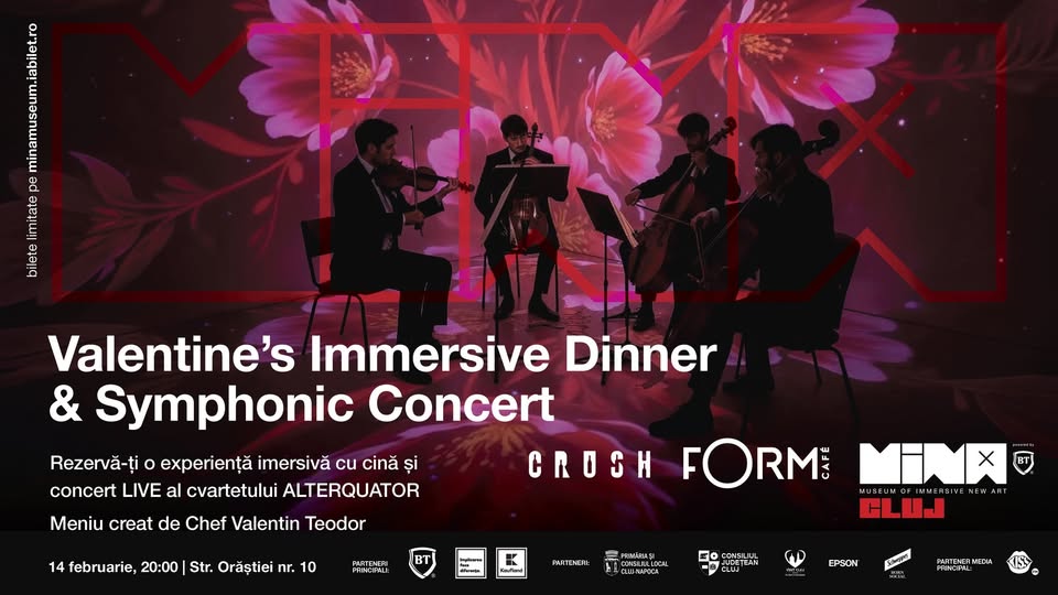 - 20:00 – VALENTINE’S IMMERSIVE DINNER & SYMPHONIC CONCERT – MINA Cluj