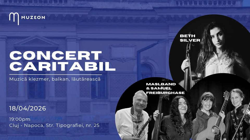 - 19:00 – Concert Caritabil: Muzică klezmer, balkan, lăutărească – Muzeon – Storytelling Jewish History Museum