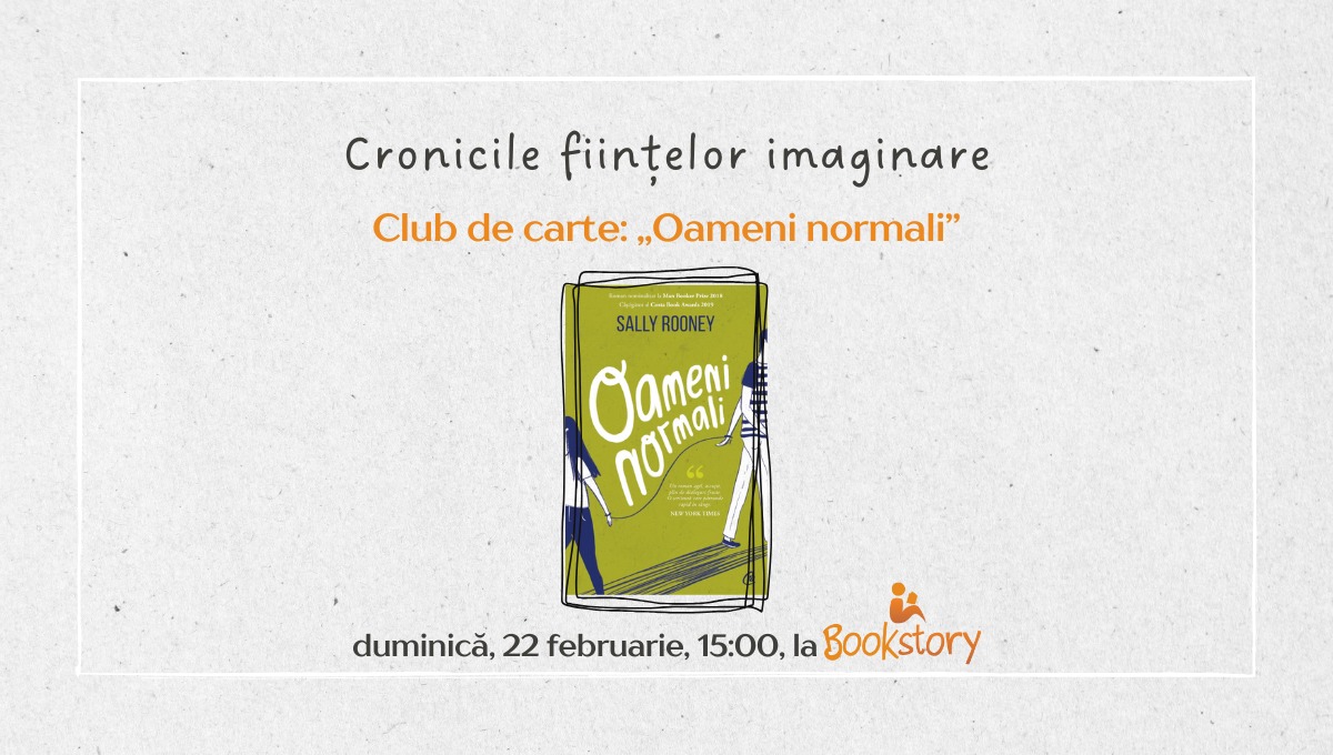 - 15:00 – Cronicile ființelor imaginare #12: „Oameni normali” [club de carte] – Bookstory