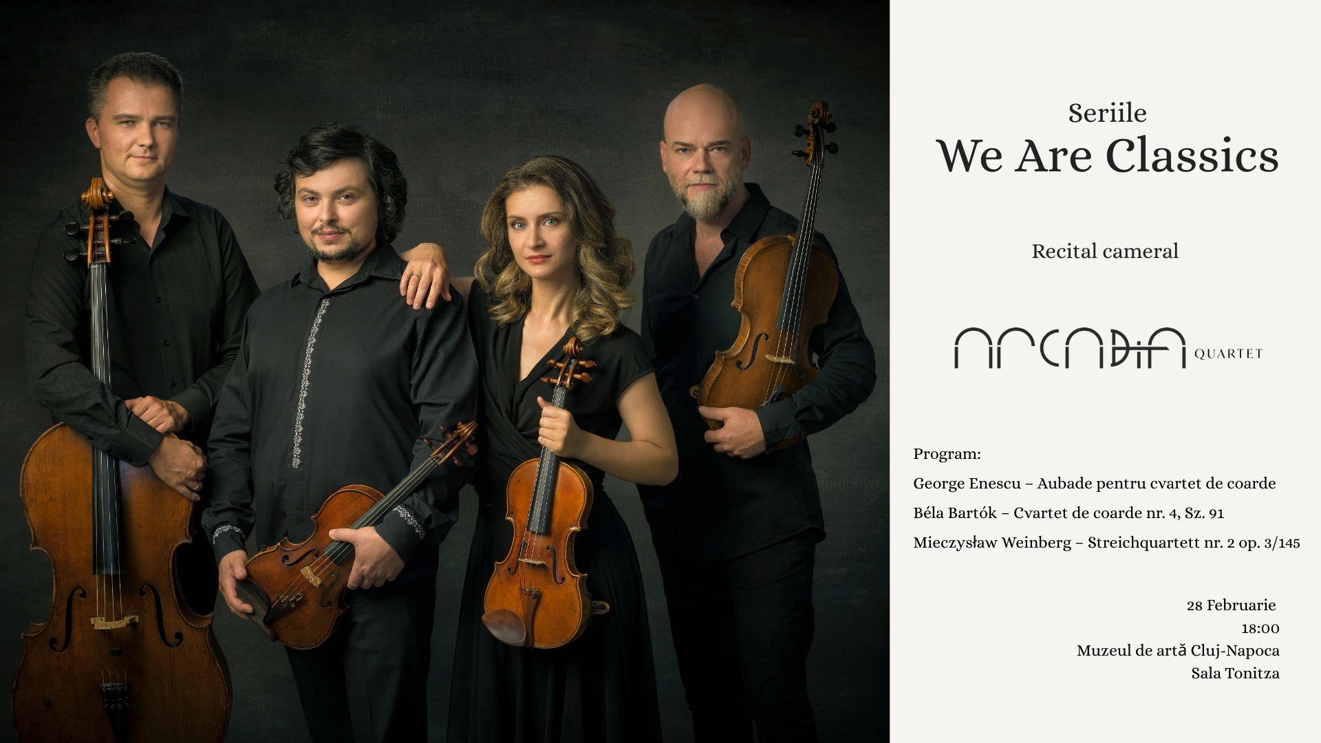 - 18:00 – Seriile We Are Classics – Recital cameral Arcadia Quartet – Muzeul de Artă Cluj-Napoca