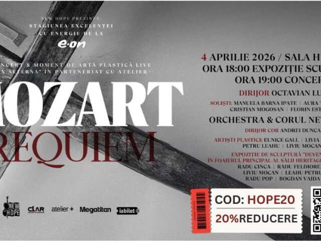 Orchestra & Corul New Hope, sub conducerea dirijorului Octavian Lup și a maestrului de cor Andrei Dunca, vor susține concertul „Mozart – Requiem” pe 4 aprilie 2026, începând cu ora 19:00, la Sala Héritage din cadrul Academiei de Muzică „Gheorghe Dima” din Cluj-Napoca. Evenimentul marchează o premieră la Cluj, aducând împreună interpretarea Requiem-ului de Mozart…