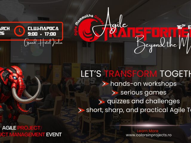 Pe 26 martie 2026, Agile Mammoths Games – un eveniment despre Agile Project & Product Management – revine la Cluj pentru ediția a 16-a, cu o temă care merge dincolo de framework-uri, metode și automatizare. Agile Transformers: Beyond the Machines este despre transformare reală, cea care începe în mentalitate, se vede în echipe și schimbă…