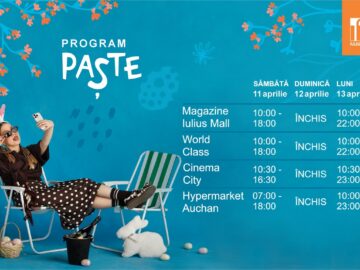 De Paște, fiecare dintre noi își dorește să petreacă mai mult timp alături de cei dragi și să se bucure împreună de farmecul sărbătorilor. Ca în fiecare an, Iulius Mall Cluj are un program special, iar tu poți să faci ultimele cumpărături sâmbătă, 11 aprilie 2026, până la ora 18.00.