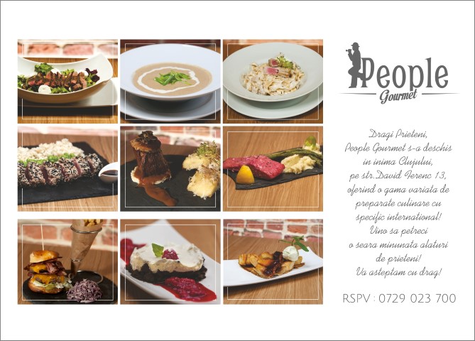 Restaurantul medium to fine dining serveste o varietate mare de preparate internationale care variaza de la obisnuitii burgeri si paste pana la niste feluri principale rafinate care abordeaza interesant ingredientele clasice. Insa nu conteaza ce comandati, deoarece mancarea o sa fie negresit de calitate. Pastele sunt facute de la zero, carnea este alesa cu atentie (vita provine doar din vaci Black Angus), pana si chiflele de burger sunt coapte in restaurant. Iar daca in mod normal v-ati astepta ca un asemenea loc sa aiba preturi enorme, va putem spune de pe acum ca raportul calitate-pret e printre cele mai bune din oras. Insa meniul distinctiv e doar o parte din experienta People Gourmet.